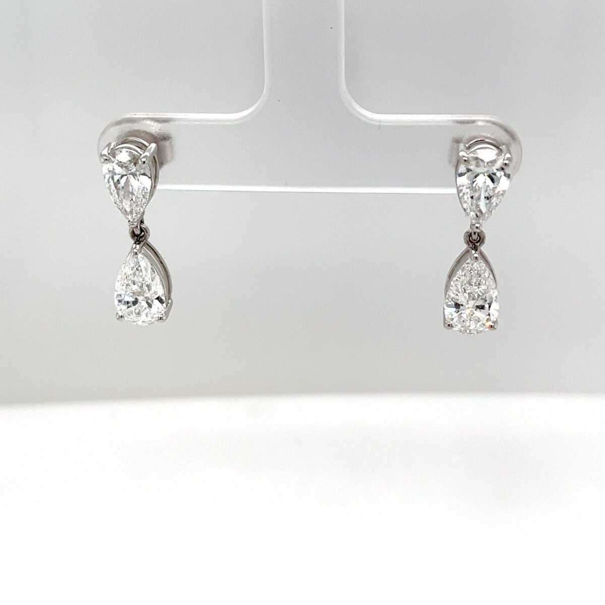14ct White Gold Lab Created Diamond Drop Earrings, 3.63ct