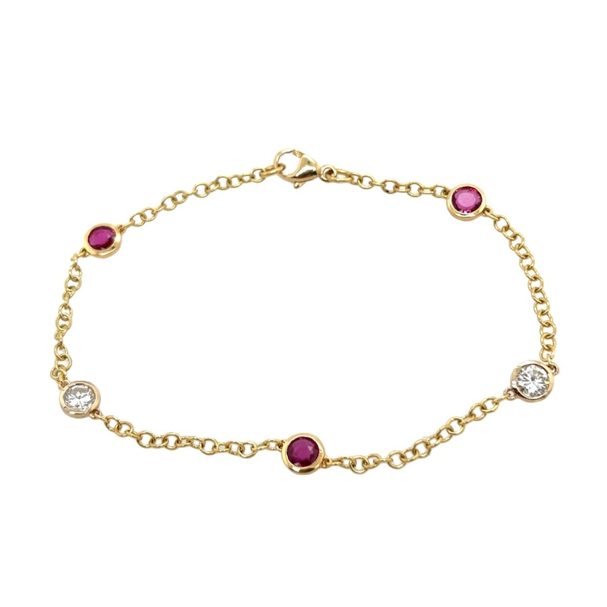 A timeless and elegant piece, this 18ct yellow gold bracelet features a beautiful alternating with 3 vibrant rubies and 3 sparkling natural diamonds.