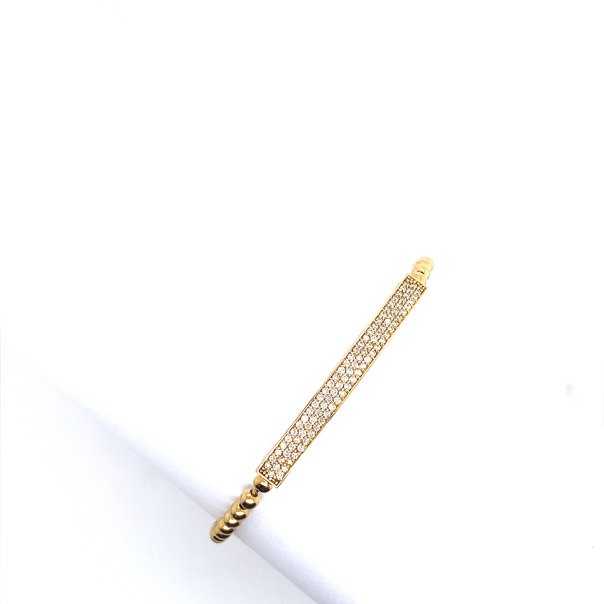 18ct Yellow Gold 3-Row Bar Diamond Bracelet With 3mm Beads on Bracelet