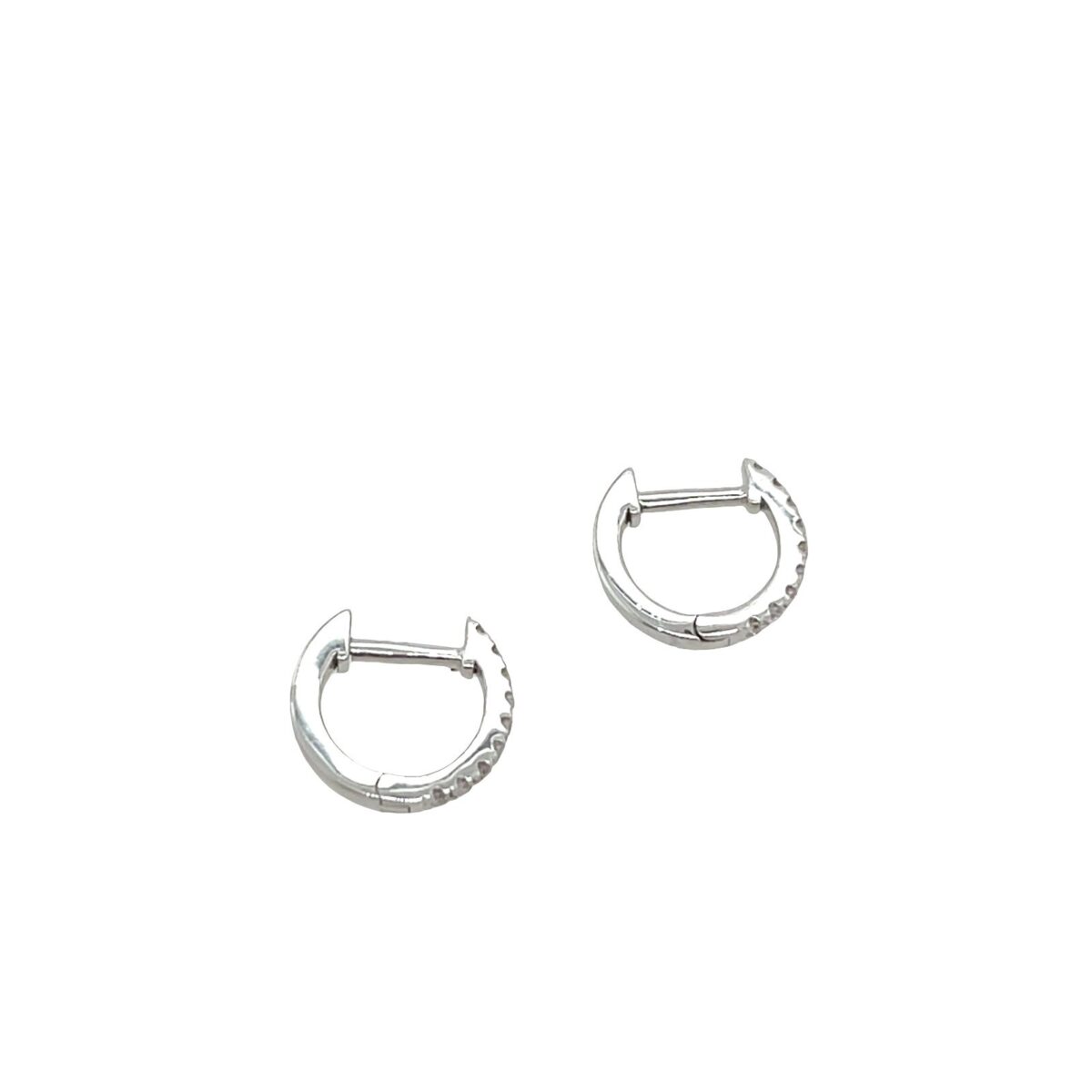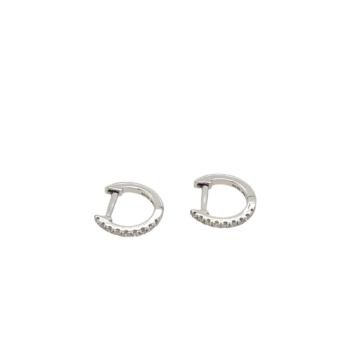14ct White Gold Diamond Hoop Earrings, Set With 0.08ct Of Round Diamonds,9.50mm