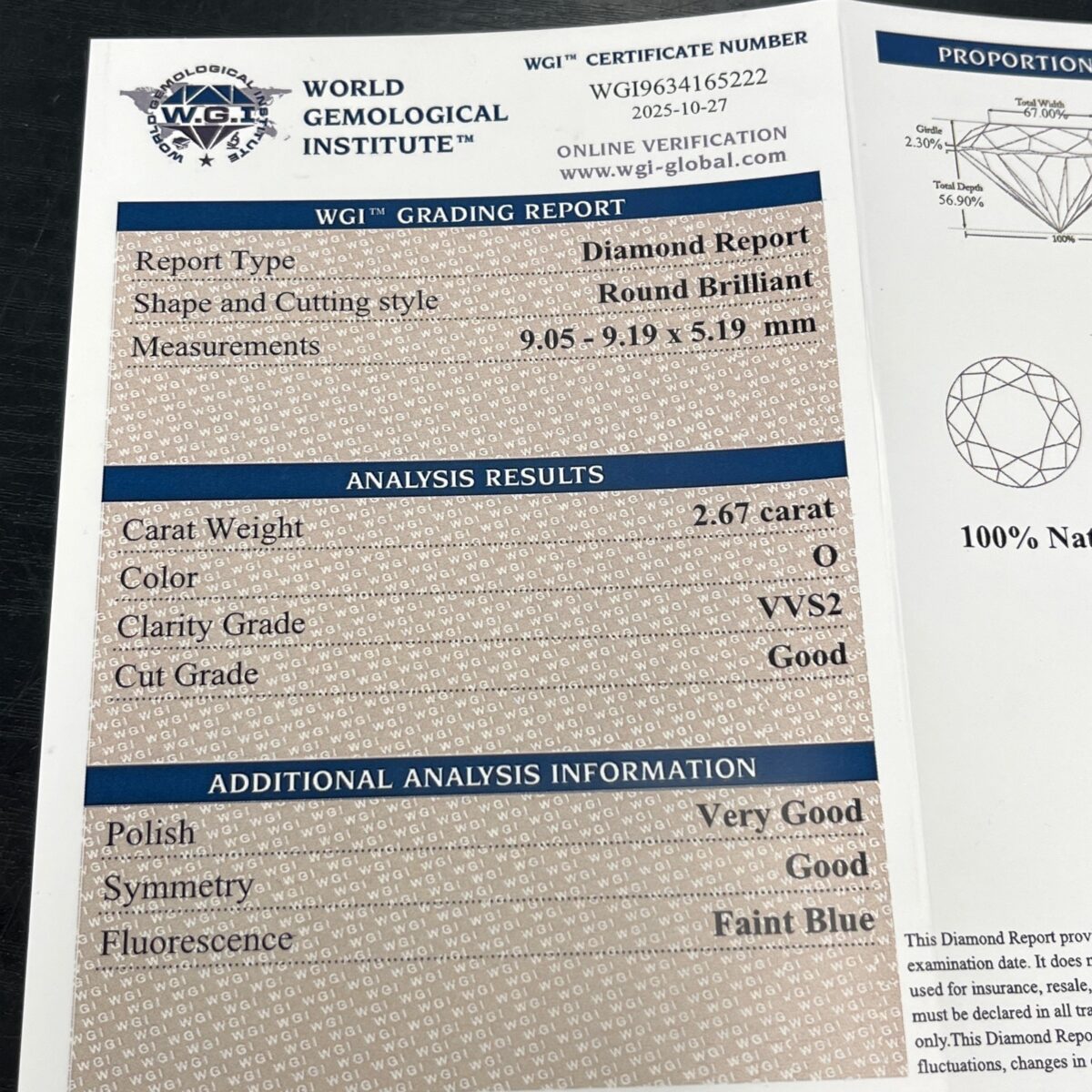 - Diamond Clarity: VVS2