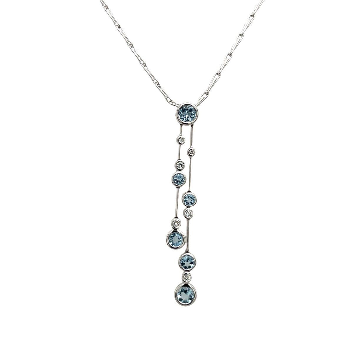 18ct White Gold Diamond & Aquamarine Necklace