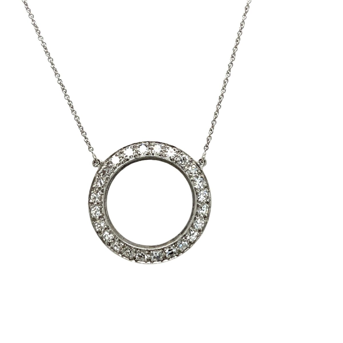 A timeless Circle of Life pendant in platinum set with 0.30ct of sparkling old cut natural diamonds. This elegant piece symbolizes eternity and unity, perfect for adding a touch of sophistication to any outfit.