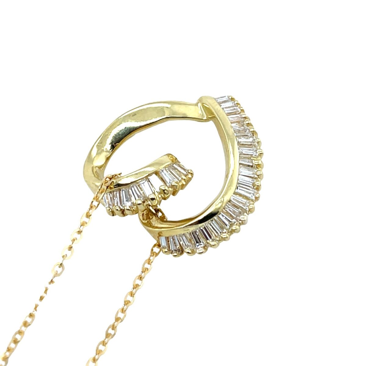 A beautiful vintage heart-shaped pendant crafted in solid 18ct yellow gold, set with approximately 0.70ct of natural baguette-cut diamonds.