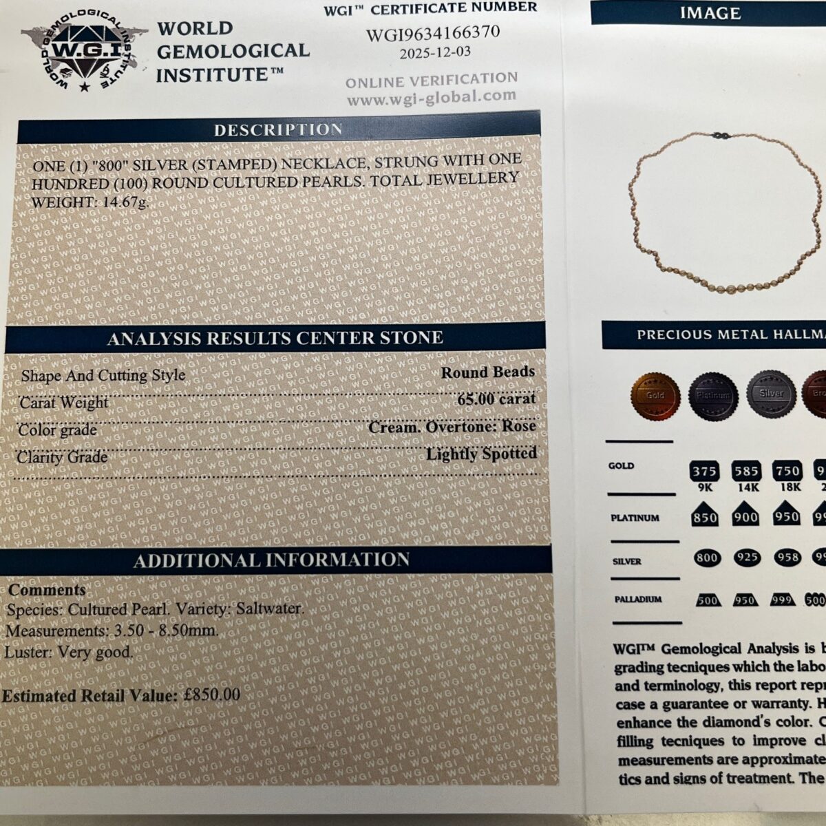 Vintage 3.5mm – 8.5m Pearl Necklace 800 Silver Clasp