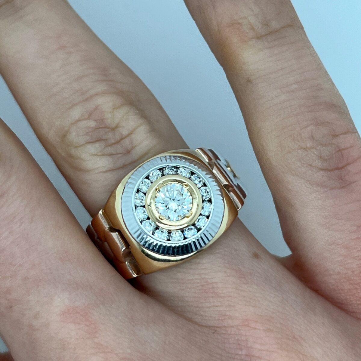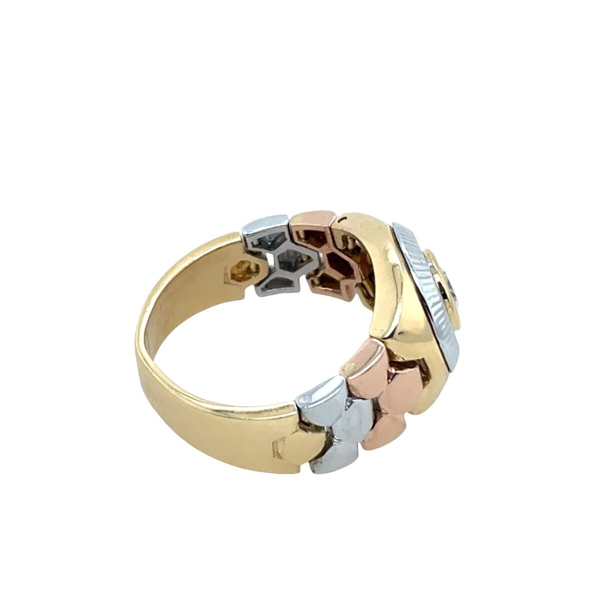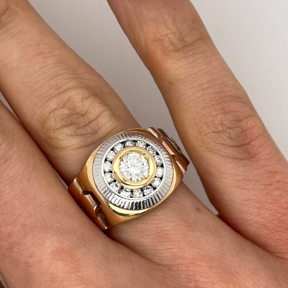 0.55ct Diamond Men’s Ring – 3-Colour 18ct Gold, Rolex-Style Band