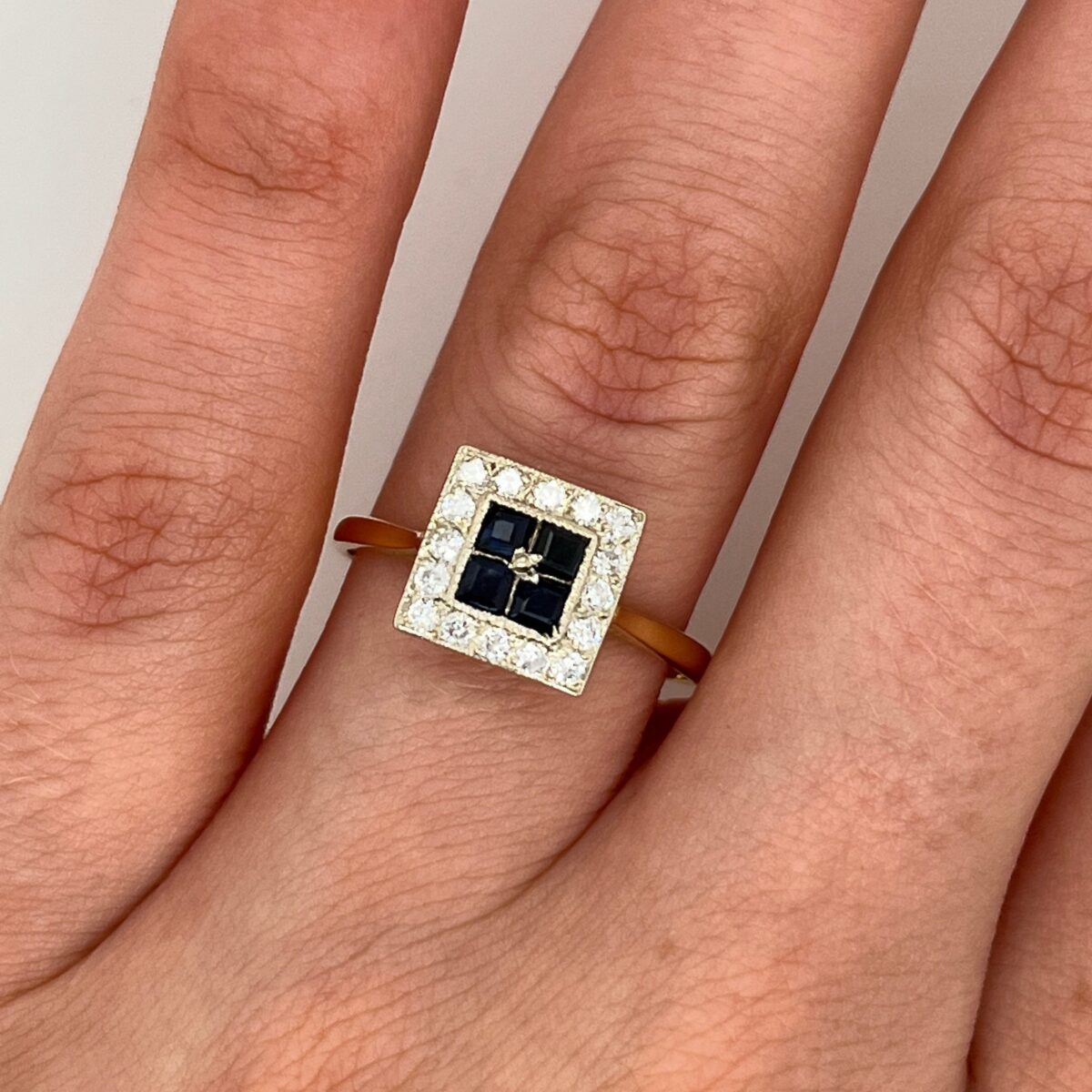 18ct Yellow & White Gold Ring Set with 4 Sapphire Halo diamonds
