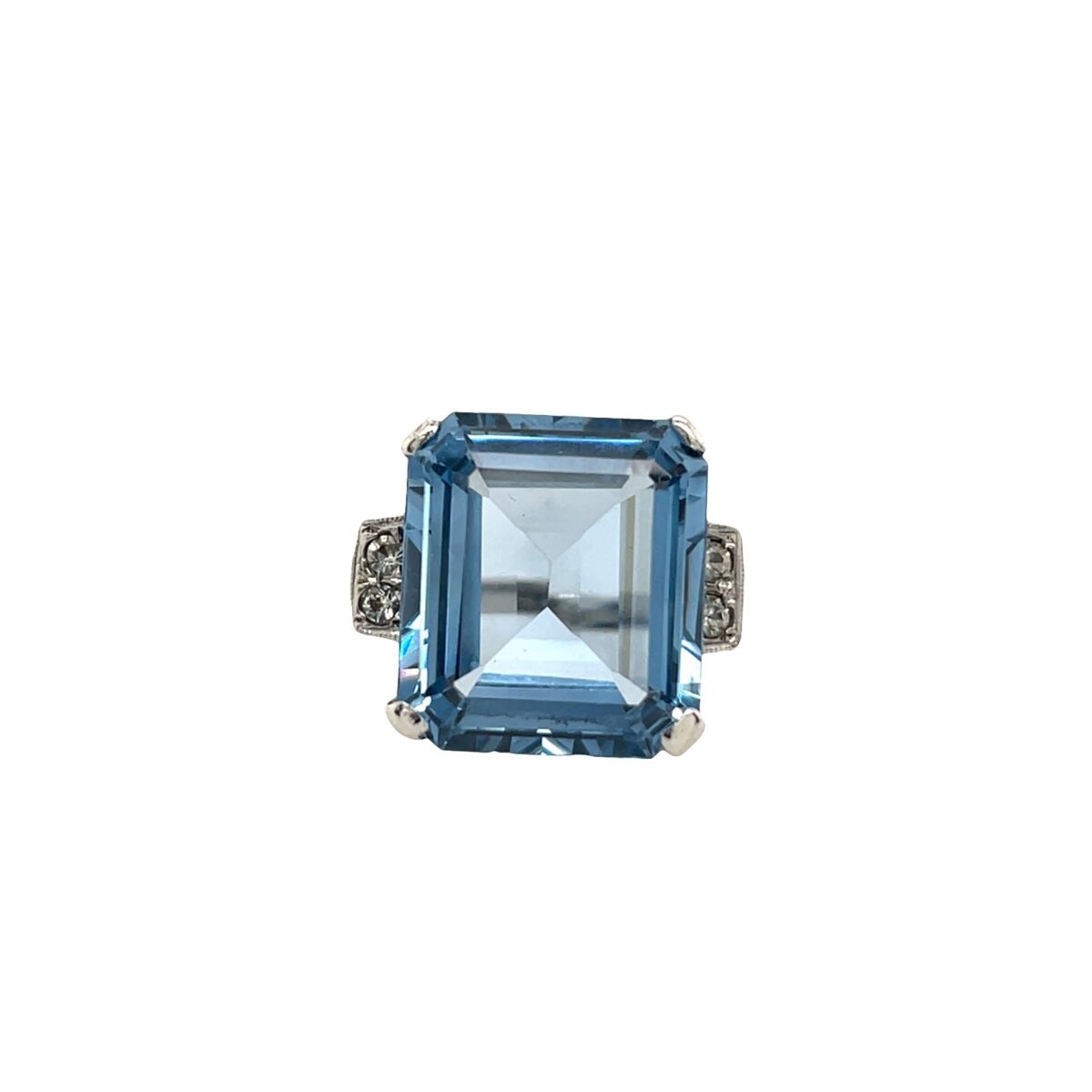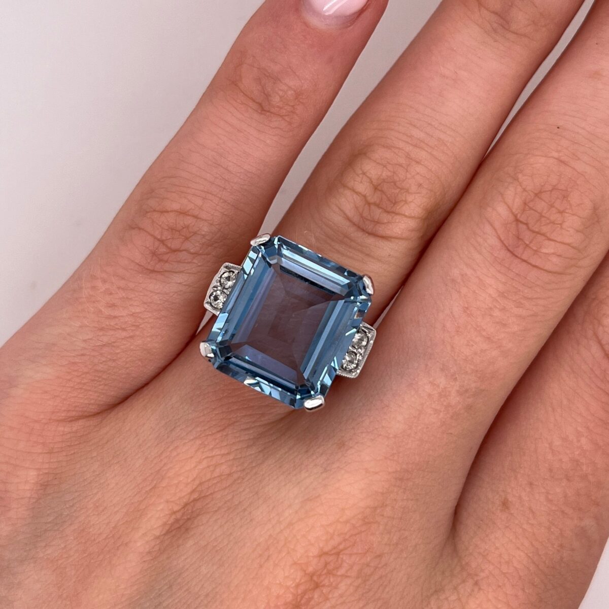 Aquamarine & Diamond Ring Set in 9ct White Gold & Silver