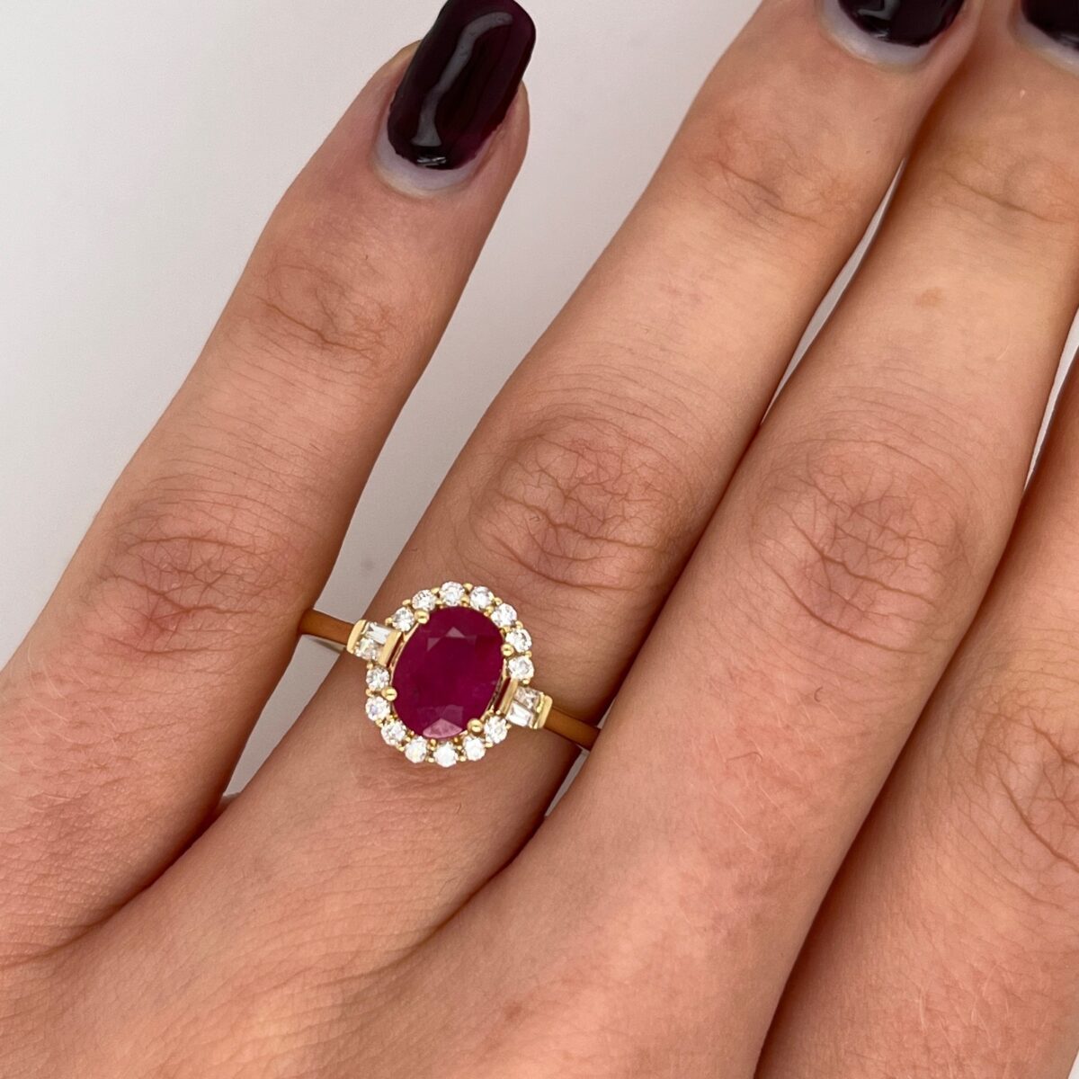 ILIANA 18ct Yellow Gold Ring Set with Ruby and Natural Diamonds
