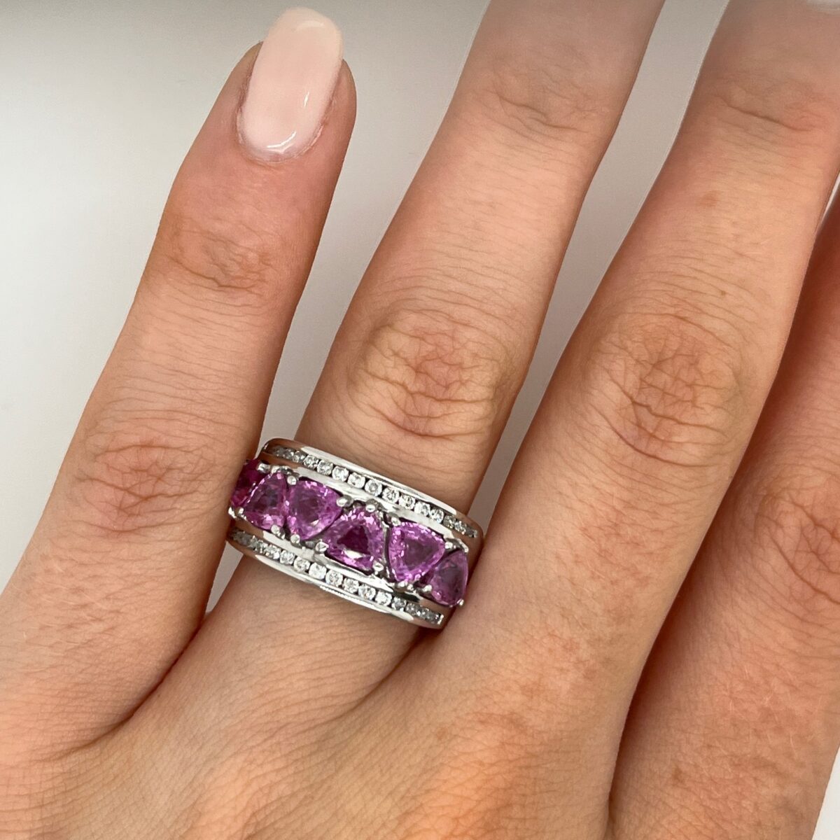 Pink Sapphires & Diamond Dress Ring Set in 18ct White Gold