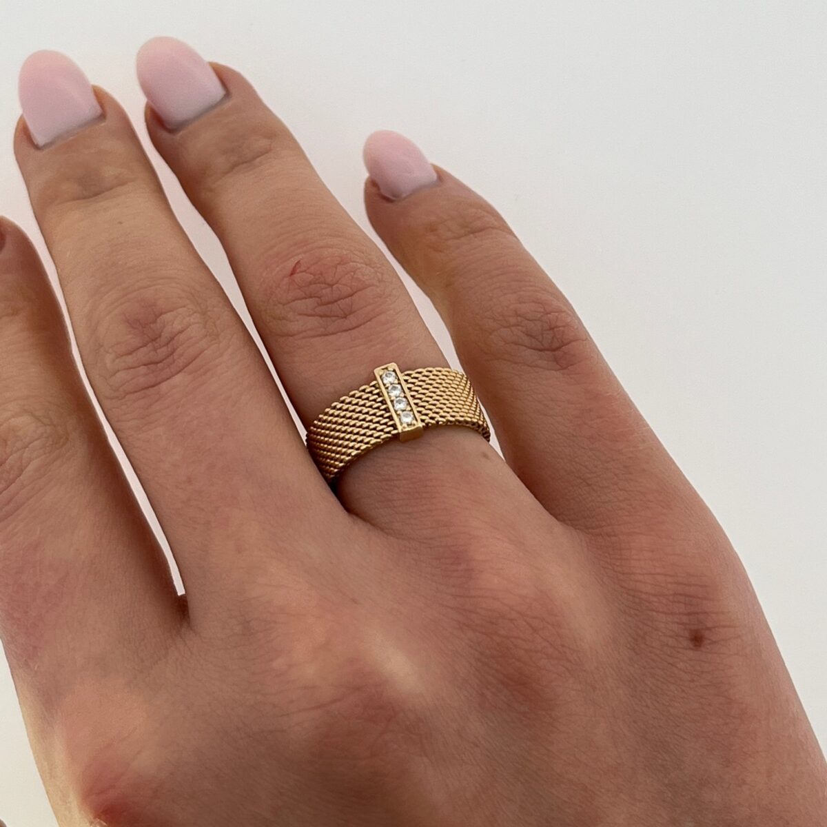 Tiffany & Co. Somerset 18 Karat Yellow Gold and Diamond Mesh Ring