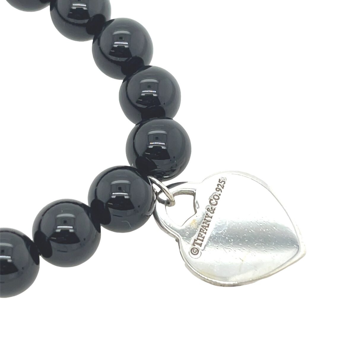 Return To Tiffany & Co. 8mm Onyx Bead Ball Silver Heart Tag Bracelet
