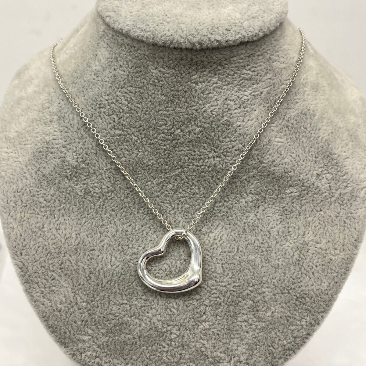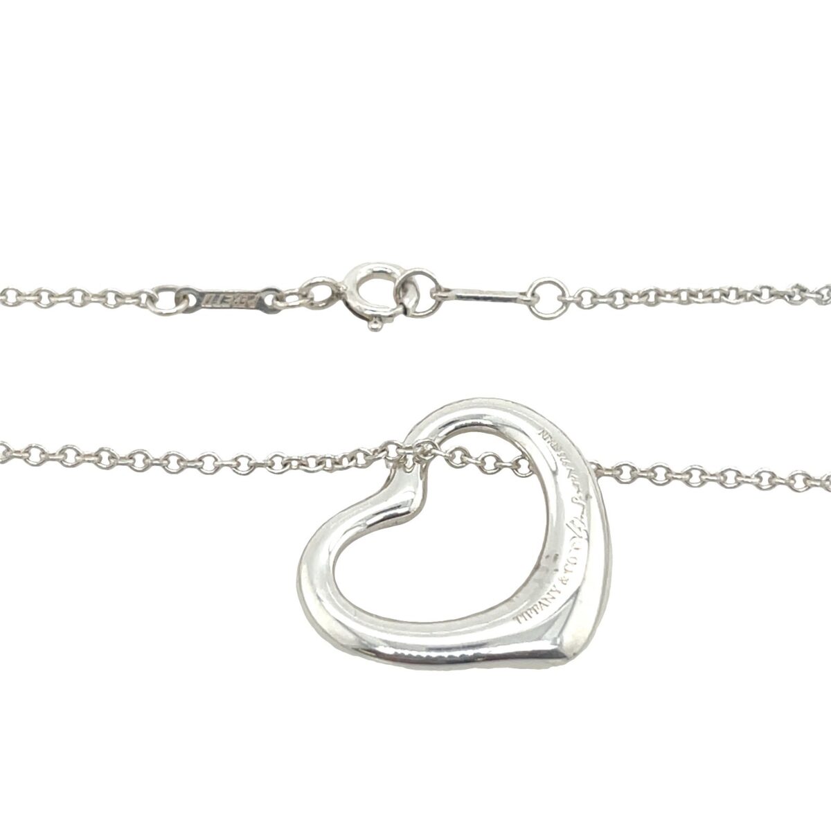 A graceful sterling silver 22 mm Open Heart Pendant by Tiffany & Co., designed by Elsa Peretti. Its simple, fluid silhouette creates an elegant, modern symbol of love that’s perfect for everyday wear or special occasions.