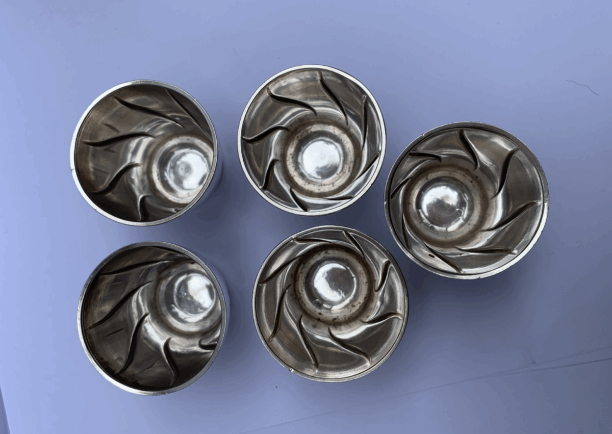 The five silver cups are decorated with a graceful undulating wave pattern.