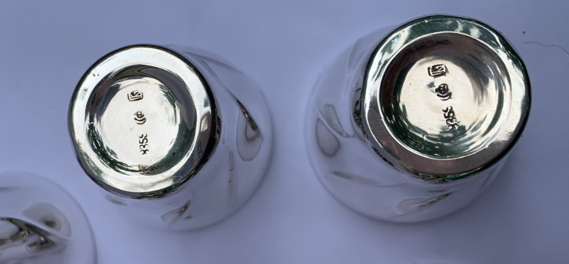 Five Small German Silver Kiddush/Shot Cups