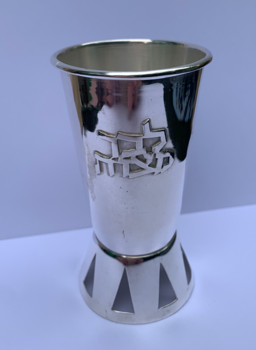 In good vintage condition, this is a beautiful cup, it would make a lovely bar mitzvah present. It says L'Bar Mitzvah on it in Hebrew.