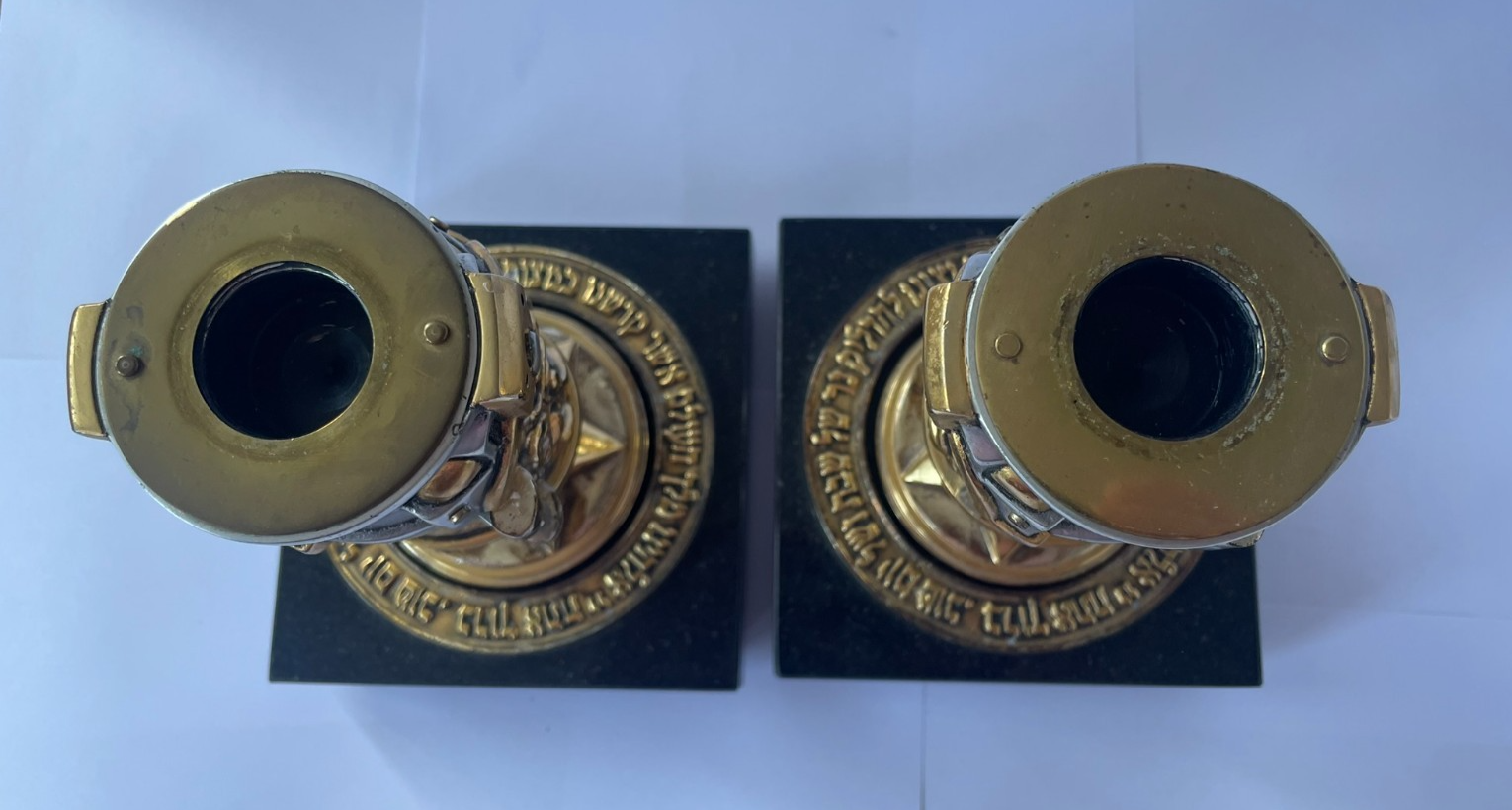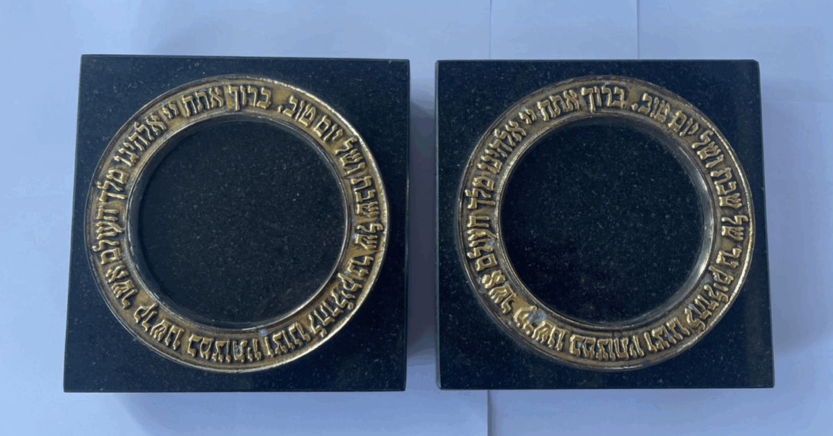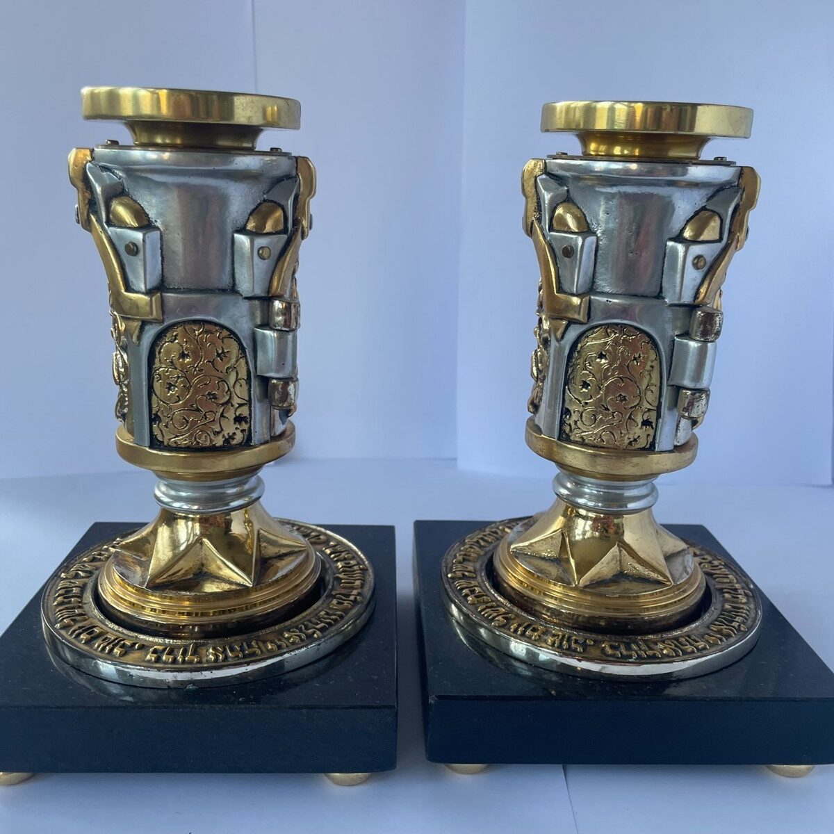 Pair of Elaborate Frank Meisler Shabbat Candlesticks with Granite Plinths