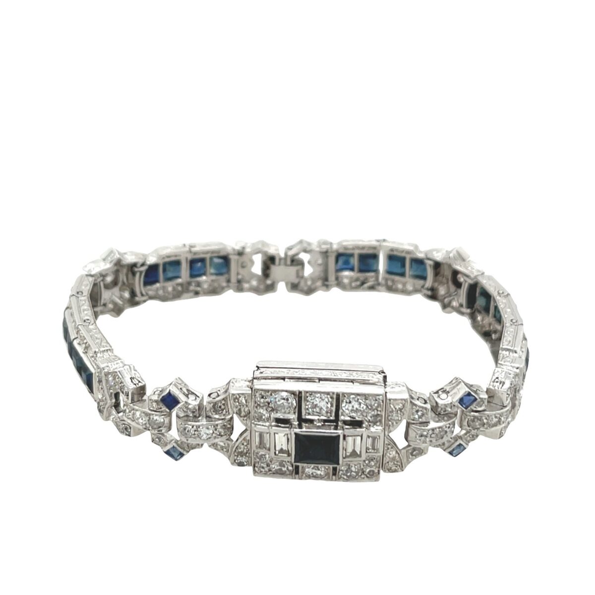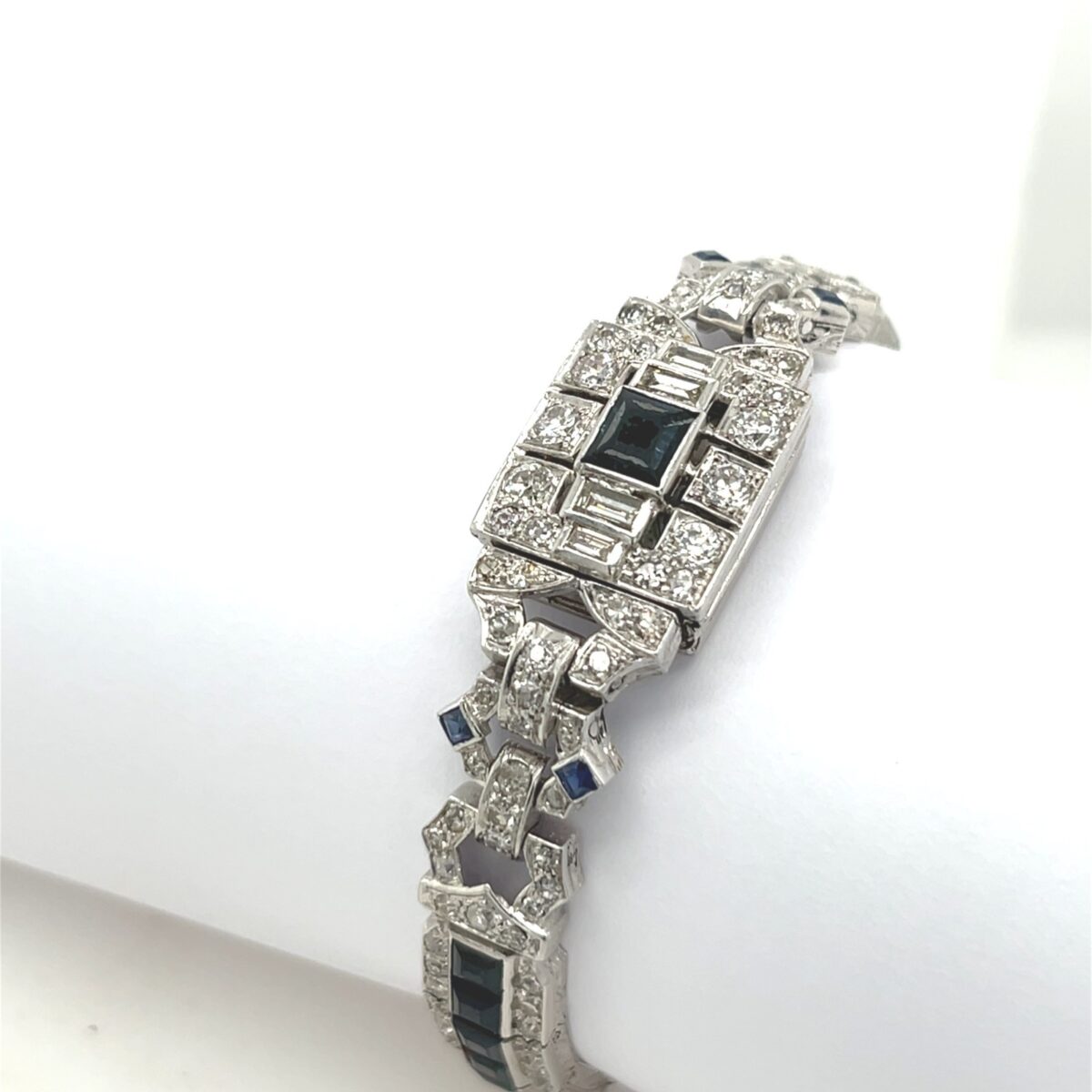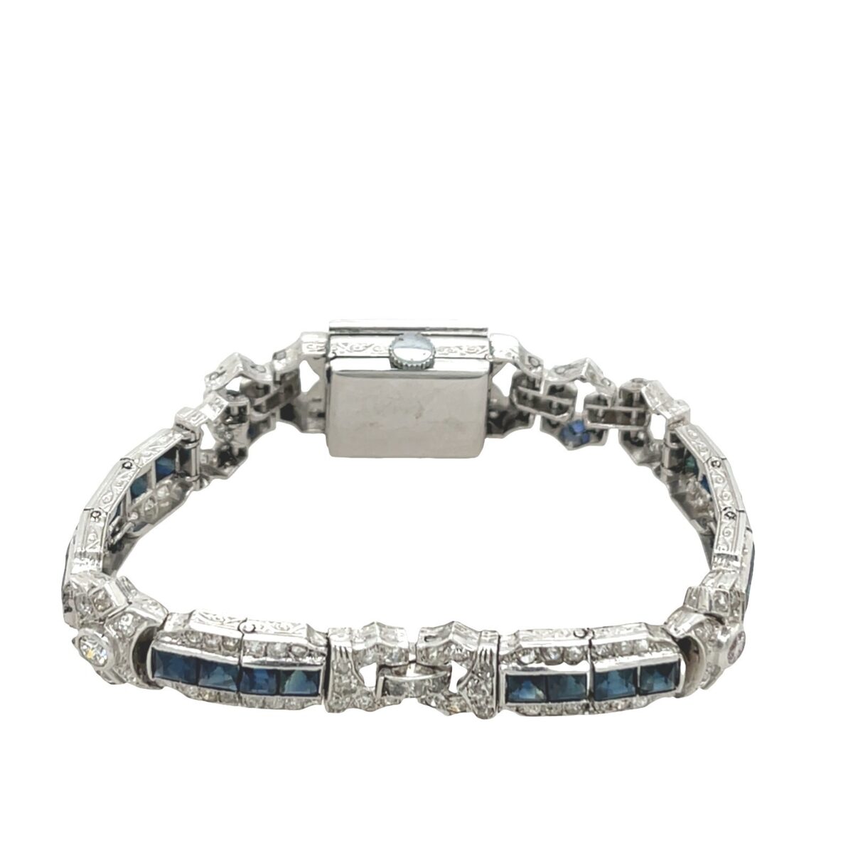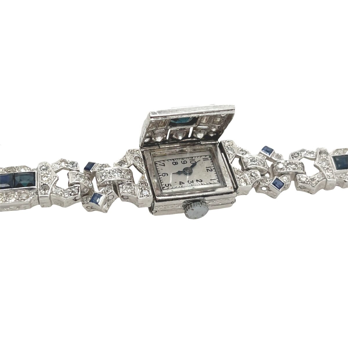 Art Deco Platinum Hidden Watch Bracelet – Diamonds & Sapphires