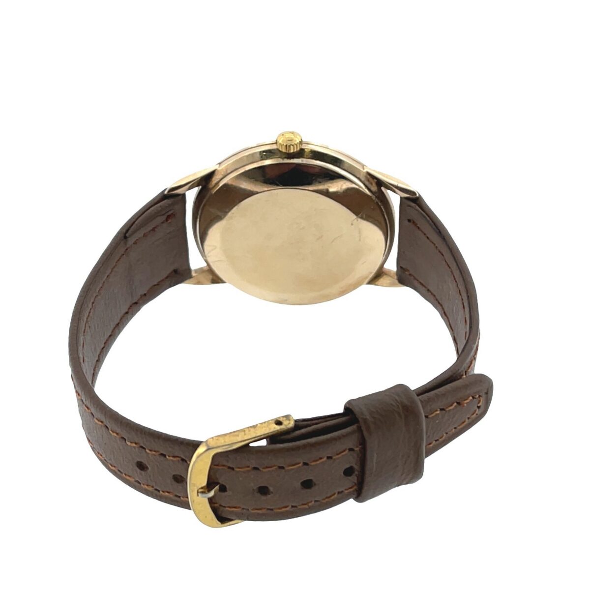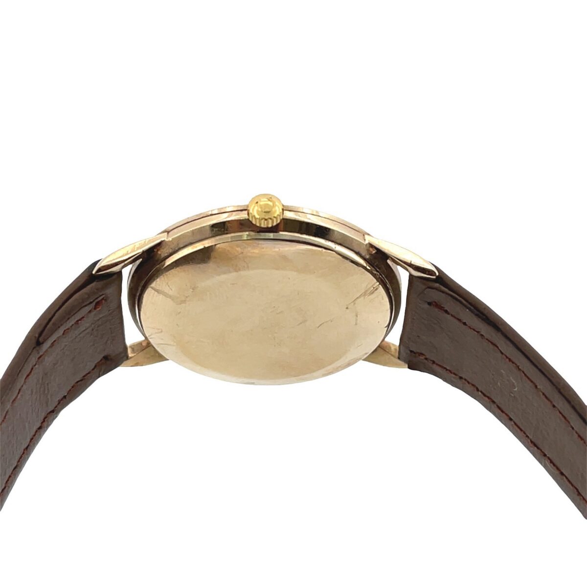featuring a refined solid 9ct gold case paired with a brown leather strap. Elegant and understated, this timeless model showcases Omega’s renowned Swiss craftsmanship and clean mid-century design.