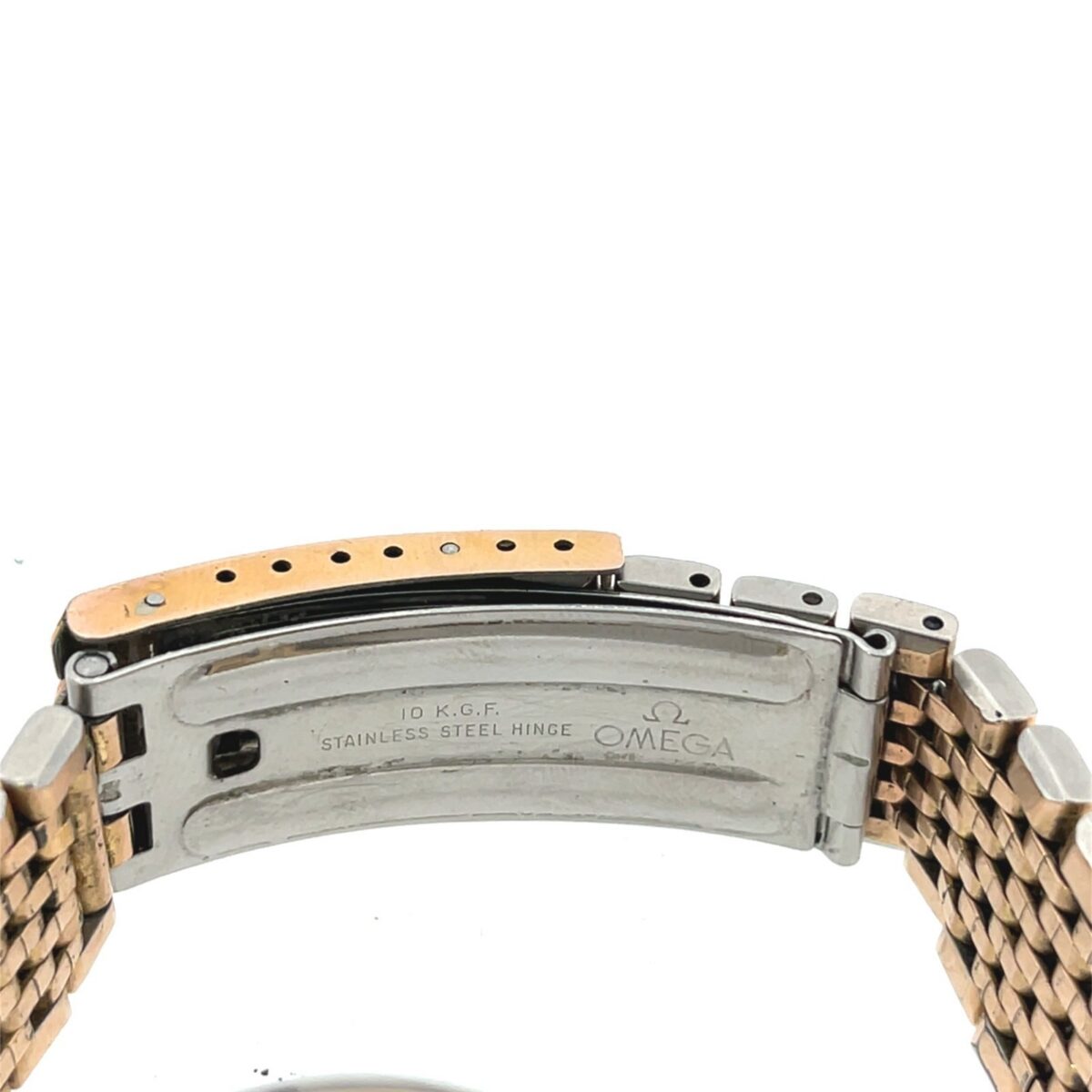 featuring a refined champagne/grey dial housed in a gold-plated case and paired with a matching gold-plated bracelet. This timeless model reflects Omega’s renowned Swiss craftsmanship and clean mid-century design.