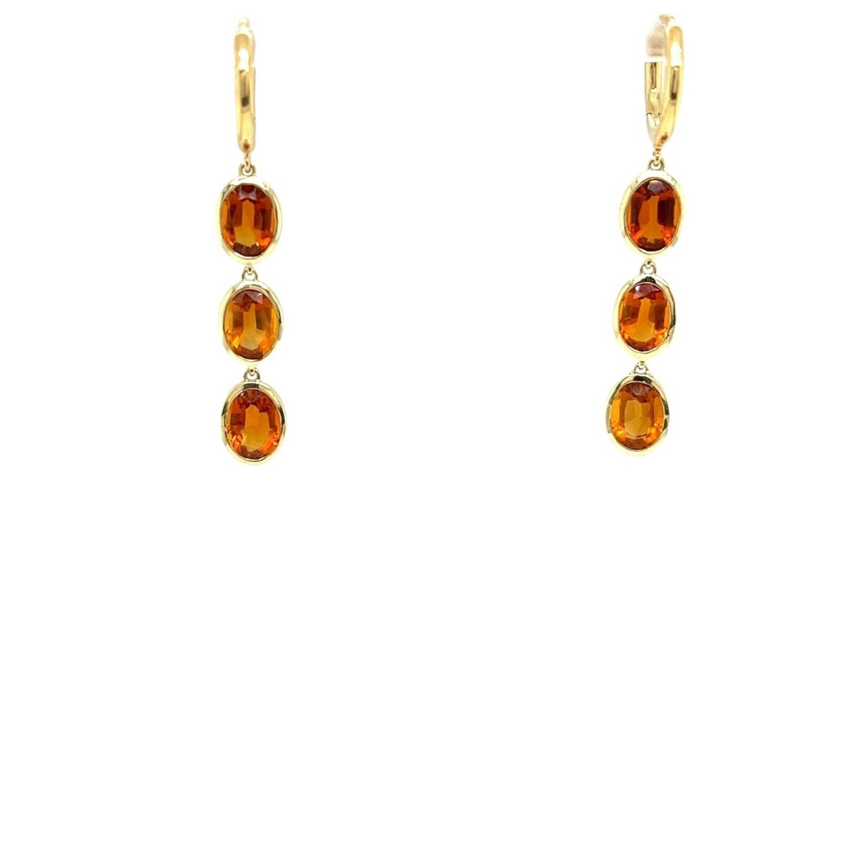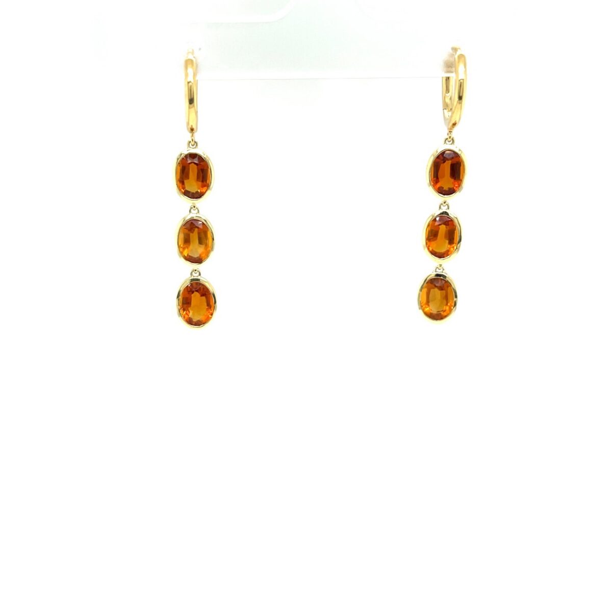 These elegant drop earrings are set in 14ct yellow gold and feature citrine gemstones, known for their warm, golden hue. The stones are carefully cut and polished to showcase their natural brilliance. The simple yet sophisticated design makes these earrings a timeless accessory for any occasion.