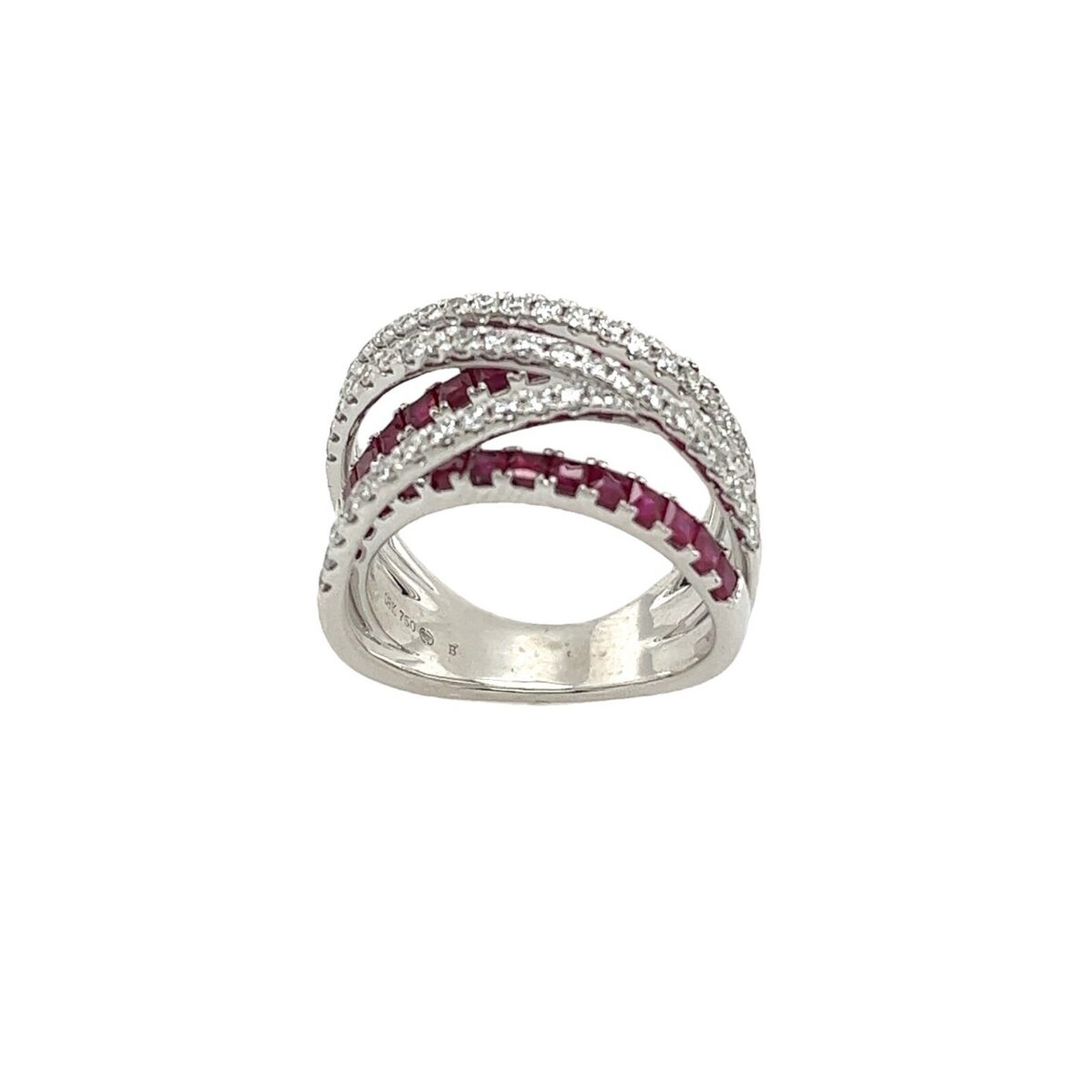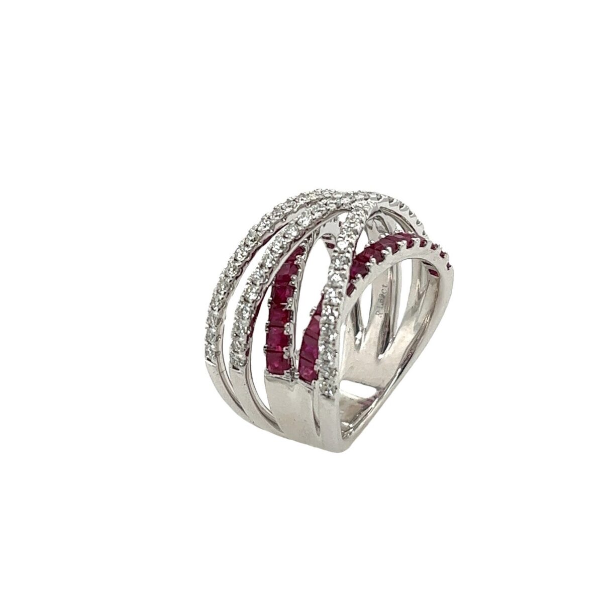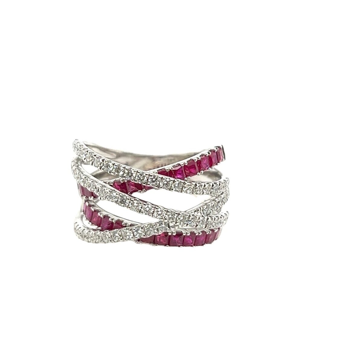 18ct White Gold 5-Row Diamond Ring, Set With 0.87ct Round Brilliant Cut Diamonds