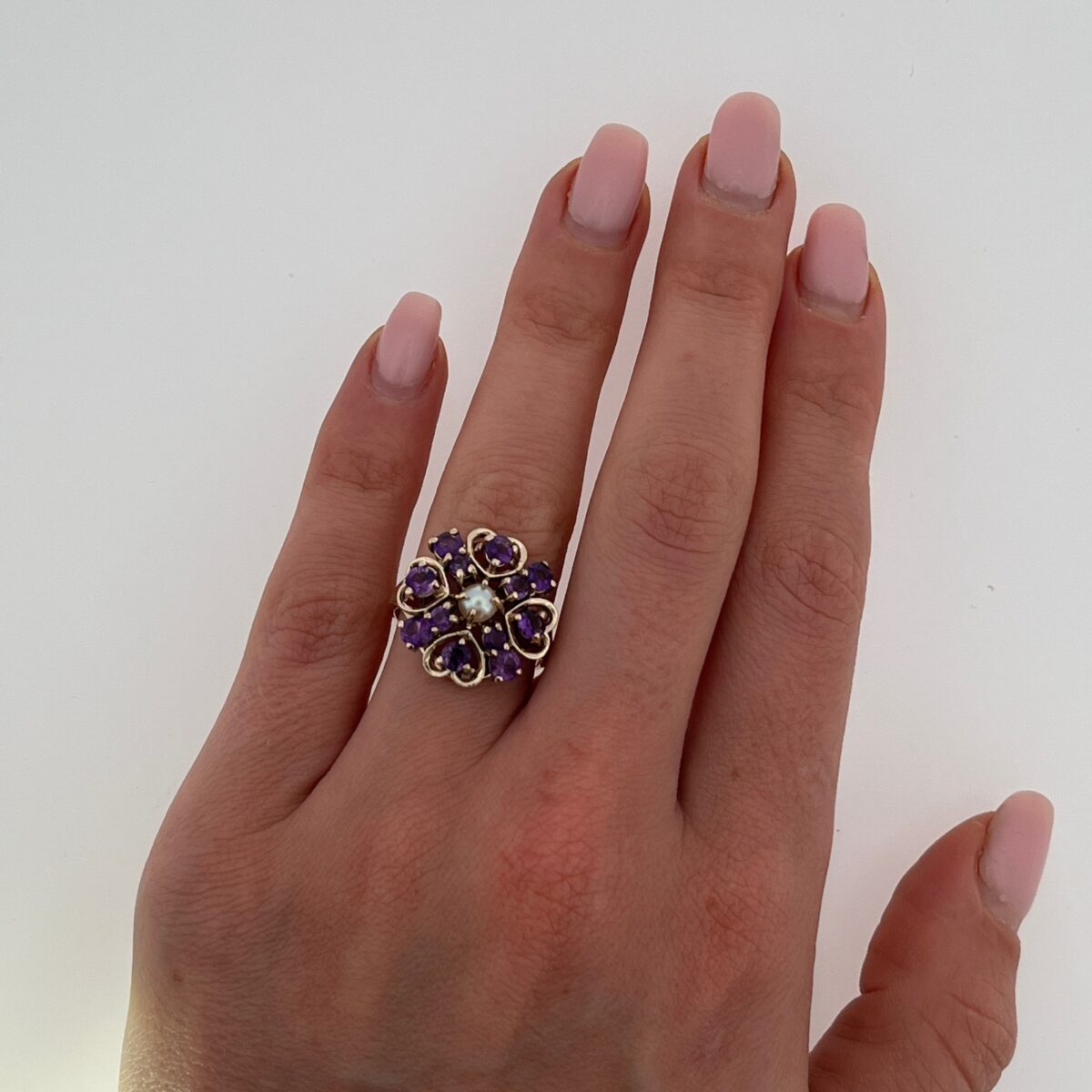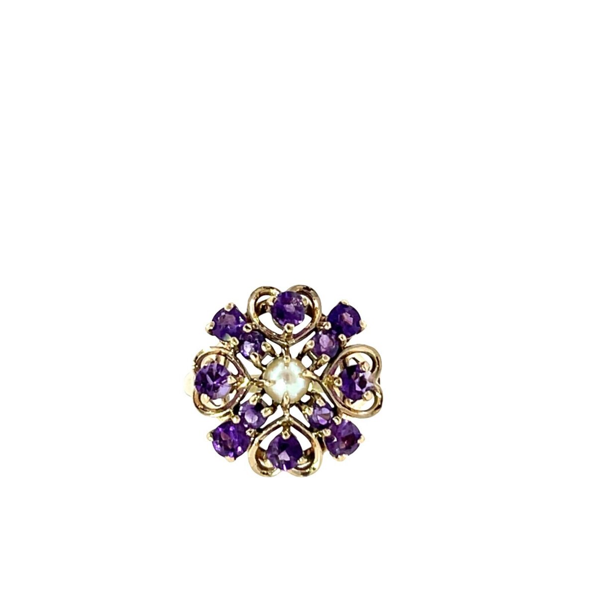 Amethyst & Pearl Cluster Ring – 9ct Yellow Gold