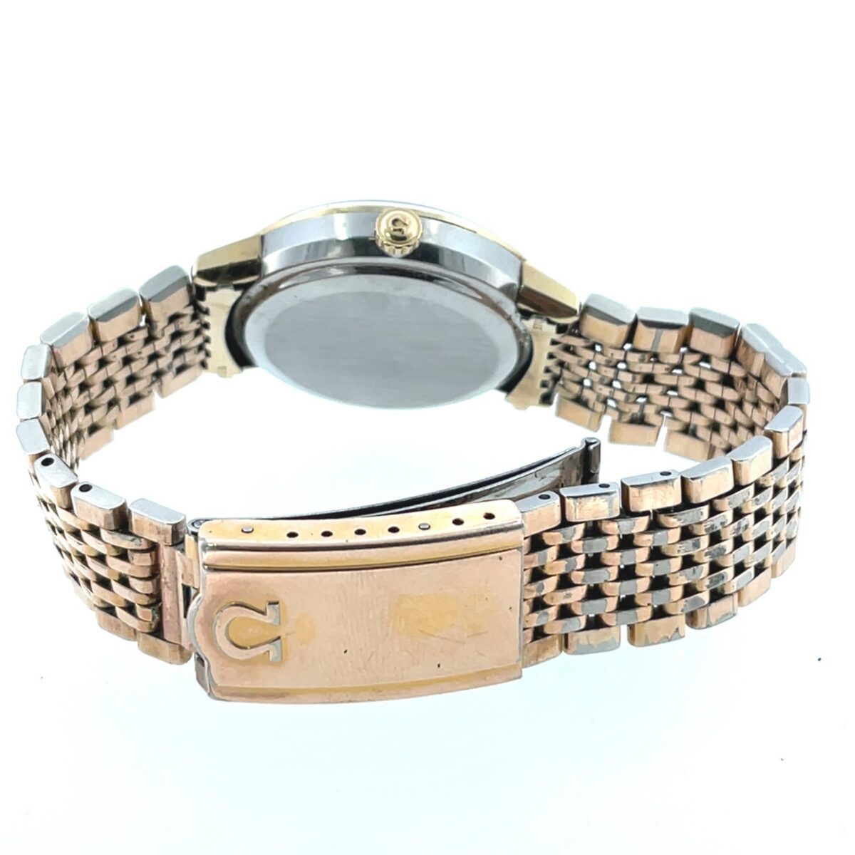 A classic vintage Omega Seamaster De Ville wristwatch, featuring an automatic movement with day-date display. The watch is housed in an elegant gold-plated case, showcasing the refined design and reliable Swiss craftsmanship that made the Seamaster De Ville line so highly regarded.